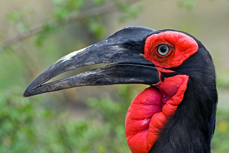 Heute seht Ihr den Kaffern-Hornrabe im Bild des Tages. Sie gehören, wie der Name schon sagt, zu den Hornvögeln, obwohl ihr Schnabel weitaus weniger imposant ausgeprägt ist, als bei ihren Verwandten. Für Vögel ebenfalls eher untypisch ist, dass sie größtenteils Bodenbewohner sind. Das heißt, dass Eure Chance diese Vögel in Afrika zu sehen, auf dem Boden viel größer ist, als in der Luft. Zudem sind die rabenähnlichen Tiere rennend immerhin genauso schnell wie im Flug.