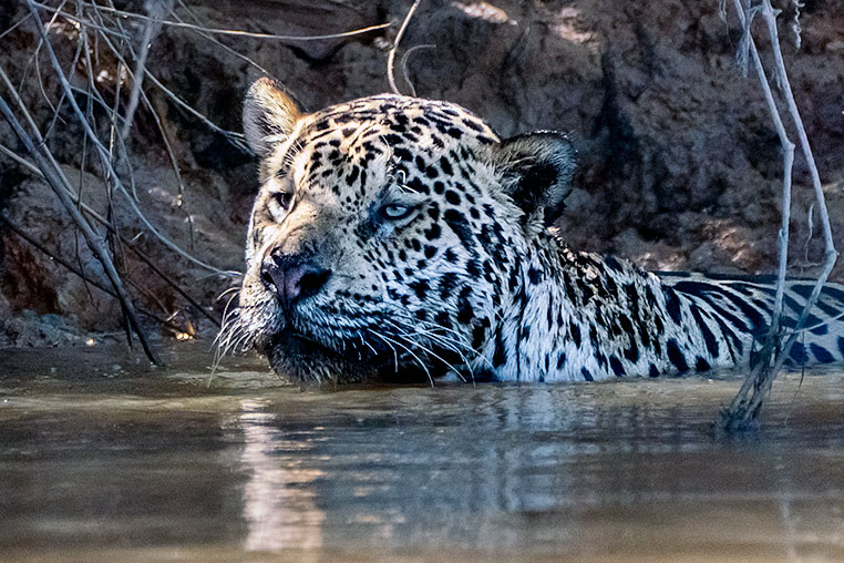 Wie dieser Jaguar im Pantanal in Brasilien von der letzten Fotosafari. Er schwamm durch den Fluss, in die Richtung, die er für sich einschlug, nicht die seiner Vorgänger.