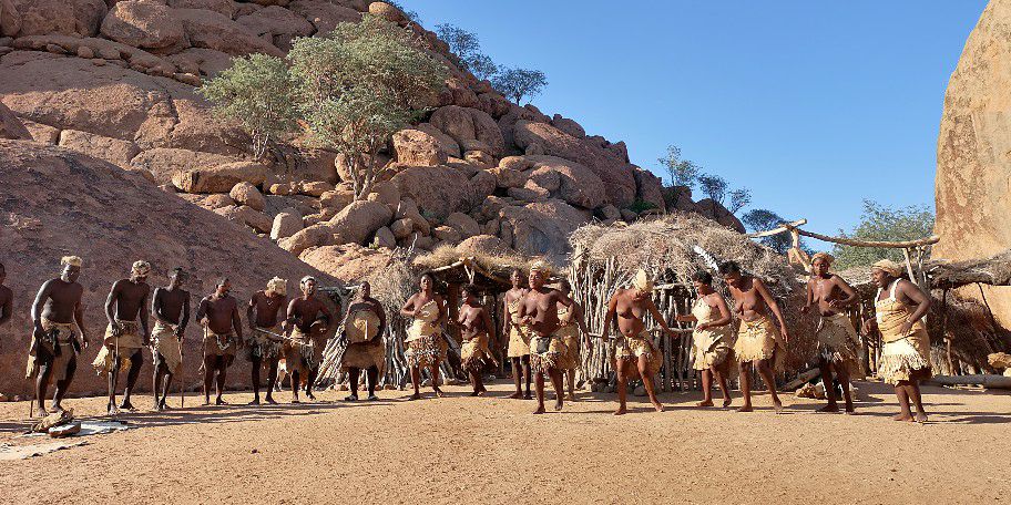 Der heutige Tag unserer Fotosafari hat mit einem Besuch eines Damara-Dorfes begonnen. Diese Aktivität war eine Überraschung meinerseits für die Teilnehmer unserer Fotoreise. Sie stand nicht auf unserer Aktivitätenliste und sollte ein Extra-Lächeln auf die Lippen unserer Gäste zaubern. Und es kam auch so. Der Besuch war fotografisch sehr ergiebig, lehrreich und lustig. Die Teilnehmer waren begeistert 🙂