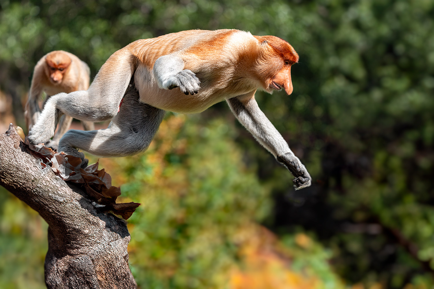 Die Nasenaffen Borneos sind die wahren Zen-Meister des Absprungs. In fünf bislang unveröffentlichten neuen Bildern möchte ich euch ein Spektakel präsentieren, das irgendwo zwischen Hochleistungssport, modernem Tanz und reinster Anarchie liegt: der Sprung von Baum zu Baum – nicht ganz grazil, aber mit viel Mut.