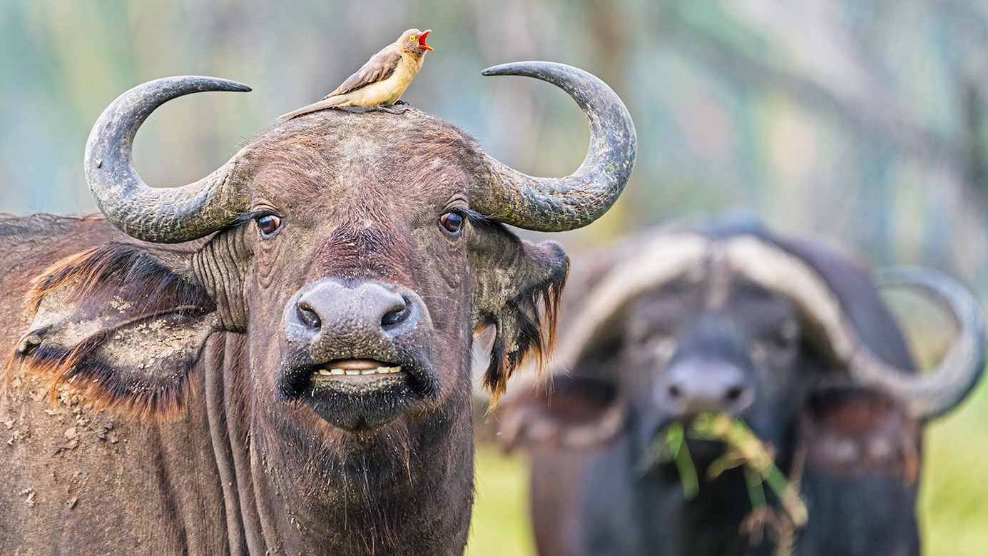 Dieses lustige Foto habe ich im Lake Nakuru Nationalpark in Kenia aufgenommen. Es sieht so aus, als würde der Madenhacker singen und die zwei Büffel total erstaunt oder überrascht zuhören. Alle drei Gesichter sind interessant, weil wir uns vorstellen können, dass ihnen gerade etwas Spannendes durch den Kopf geht.