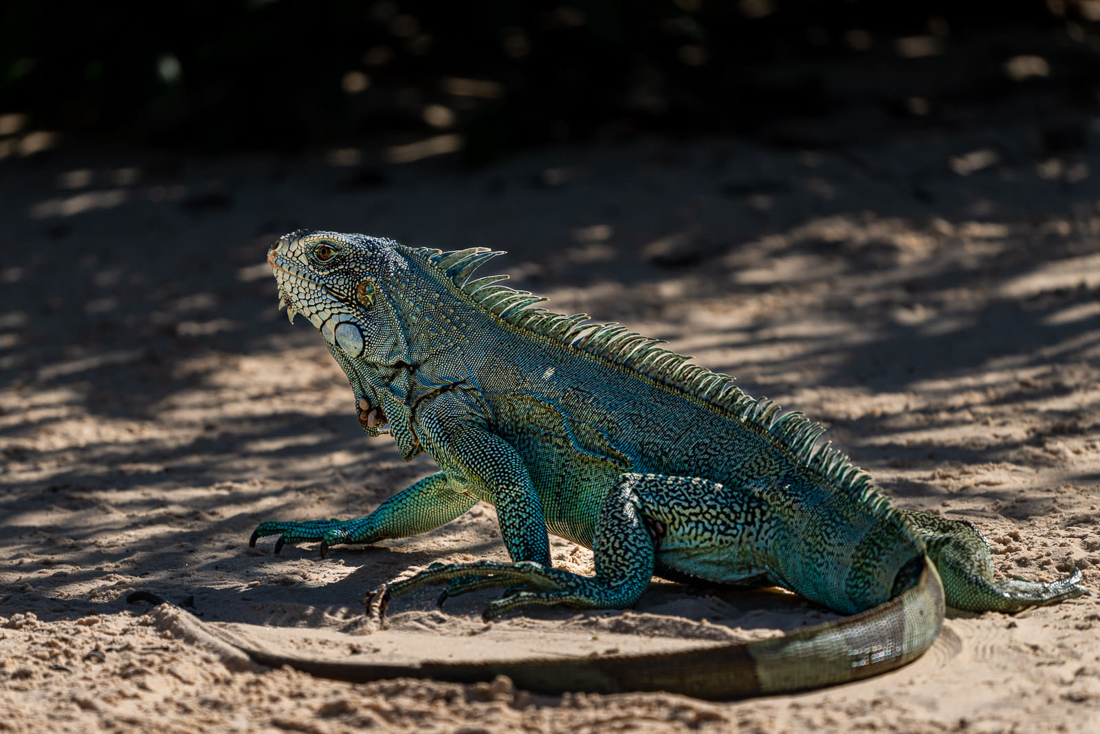 Die meisten Naturfotografen, die nach Brasilien kommen, wollen am liebsten den ganzen Tag lang nur, Jaguare, Tapire, Ozelots und andere prominente Tiere fotografieren. Dabei sind oft die kleinen Stars der Wildnis genauso interessant, wie der grüne Leguan in dem hier gezeigten Beitrag oder auch die unzähligen Vögel, die es hier in Brasilien gibt. Heute morgen haben wir eine Anaconda, einige Capybaras, etliche Vögel und zwei Jaguare gesehen, die auf ihrer Flitterwochen unterwegs waren. Die Großkatzen waren jedoch im dichten Wald und nicht gut sichtbar. Mal schauen, welche Tiere wir heute Nachmittag im Pantanal entdecken werden.