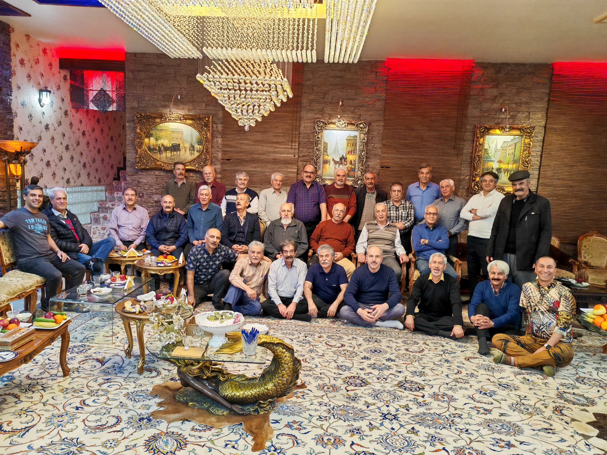 Im Herzen des großzügigen Wohnzimmers haben sich die Gäste in einem einladenden Halbkreis versammelt. Auf den Tischen prangt ein Festmahl für Geist und Gaumen: Äpfel, Bananen, Orangen, erfrischende kleine Gurken, eine verlockende Auswahl an iranischen Süßigkeiten, Gebäck, Nüsse und duftender Tee laden zum Verweilen ein.