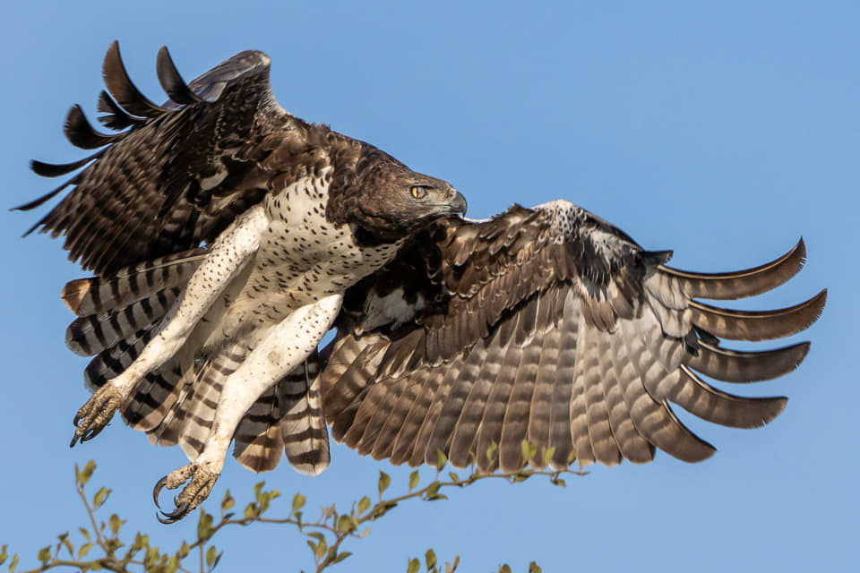 Ein Kampfadler jagt ein Perlhuhn aus einer großen Perlhuhn Familie. Die anderen Perlhühner umkreisen den Adler und schimpfen mit ihm lautstark. Während sie ununterbrochen ihren Alarm-Song singen, laufen sie in einem Abstand von zwei Metern um den Adler herum, der seine Beute in den Krallen festhält. Diese Aufregung bleibt natürlich nicht von anderen Tieren unbemerkt. Es kommen immer mehr Steppenadler zum Ort des Geschehens, weil sie hoffen, dass sie von der Beute etwas abbekommen können. Die ankommenden Steppenadler verursachen Panik bei den Perlhühnern und sie fliegen weg. Dann beginnt der Kampfadler die Federn seiner Beute heraus zu rupfen, um es dann zu verspeisen. Was für ein seltenes Erlebnis. Ich hatte zuvor gesehen, wie ein Kampfadler eine Schlange getötet hatte und ein anderer hatte einmal einen Waran gejagt. Wir sind in Tansania in sehr abgelegenen Regionen unterwegs, wo es kein Handynetz gibt. Deswegen kann ich nicht regelmäßig und ausführlich berichten. Die heutigen Bilder dokumentieren die Adler-Geschichte von heute morgen und zeigen einige Fotos von anderen tierischen Begegnungen, die wir in den letzten zwei Tagen erleben durften.