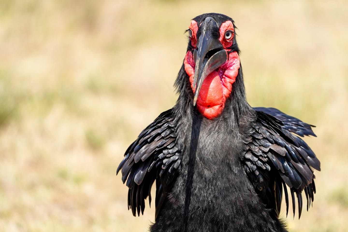 Wir fahren gerade durch die Savannenlandschaften der Masai Mara und in den letzten Stunden haben wir viele Tiere gesehen. Sechs Geparde innerhalb einer Stunde, Tausende Antilopen, Gnus, Zebras und unterschiedliche Vögel, wie den hier gezeigten Hornraabe. Wir haben zwei Gruppen mit insgesamt sieben der seltenen Hornraaben gesehen und konnten von ihnen hunderte Bilder aus nächster Nähe aufnehmen. Gerade jetzt fotografieren wir einige Kaffernbüffel. ![]()