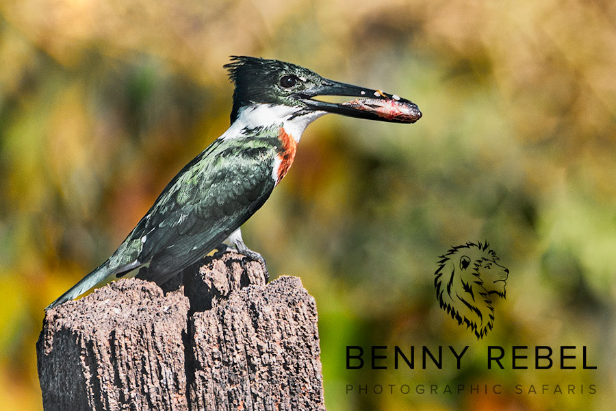 Den hier gezeigten Eisvogel habe ich vor wenigen Tagen in Brasiliens Pantanal fotografiert. Er hat gerade einen Fisch im Schnabel. Nirgendwo sonst habe ich bisher so viele Eisvögel wie im Pantanal gesehen. Die Teilnehmer meiner Fotoreise und ich haben hunderte von diesen wunderschönen Vögel gesehen und fotografiert. Wir haben mindestens fünfzig Mal beobachtet, wie diese raffinierten Jäger Fische aus dem Wasser heruasholten.