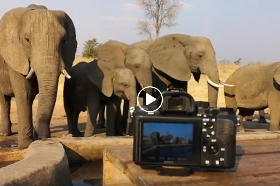 Elefanten am Camp-Wasserloch direkt vor uns auf Simbabwe´s Fotoreise