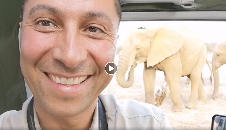 Wir beabachten und fotografieren eine große Elefantenherde seit einiger Zeit und sie sind total entspannt. Der kleinste Babyelefant kam gerade direkt zu unserem Auto und hat an unserem Auto geschnüffelt.