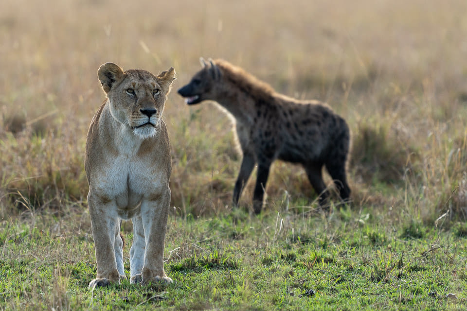 Heute haben wir die Feindschaft der Löwen und Hyänen miterlebt.