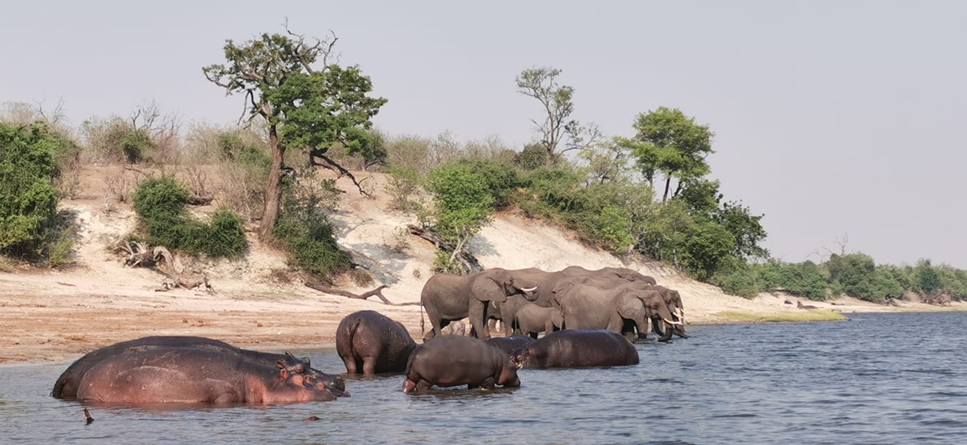 Hippos und Elefanten in Botswana