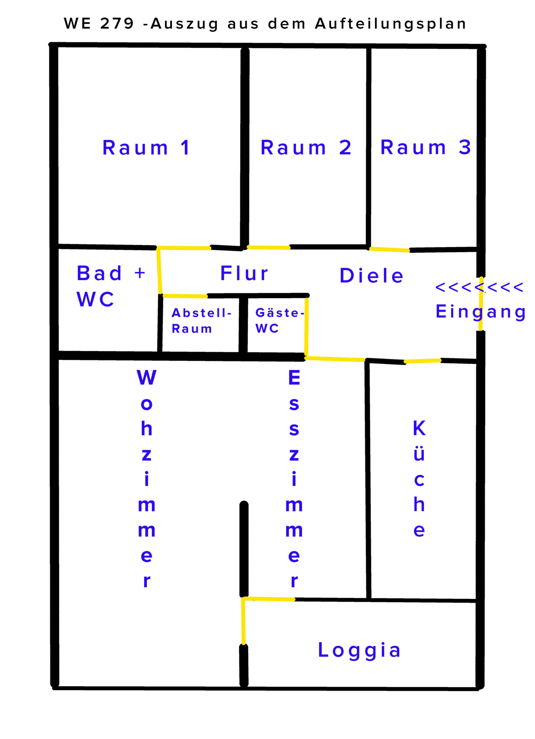 Da ich noch keine aktuellen Bilder von den Wohnungen habe, zeige ich hier nur den Grundriss der Wohnungen, die natürlich identisch ist. Beide Wohnungen werden frisch renoviert den nächsten Mietern übergeben.