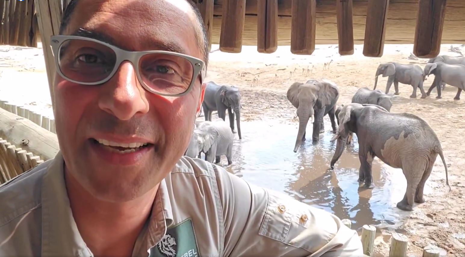 Es ist unfassbar schön, dass vor unserer Lodge sich eine sehr schöne und beliebte Wasserstelle befindet. Wir sind seit vier Stunden hier und seitdem ist dieses Wasserloch kontinuierlich besetzt. Vor allem kommen zahlreiche Elefanten hierher, um ihren Durst zu stillen.