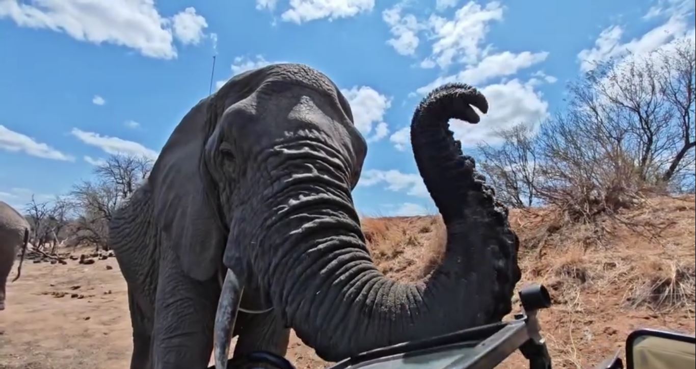 Wir sind gerade bei diesen neugierigen und freundlichen Elefanten.