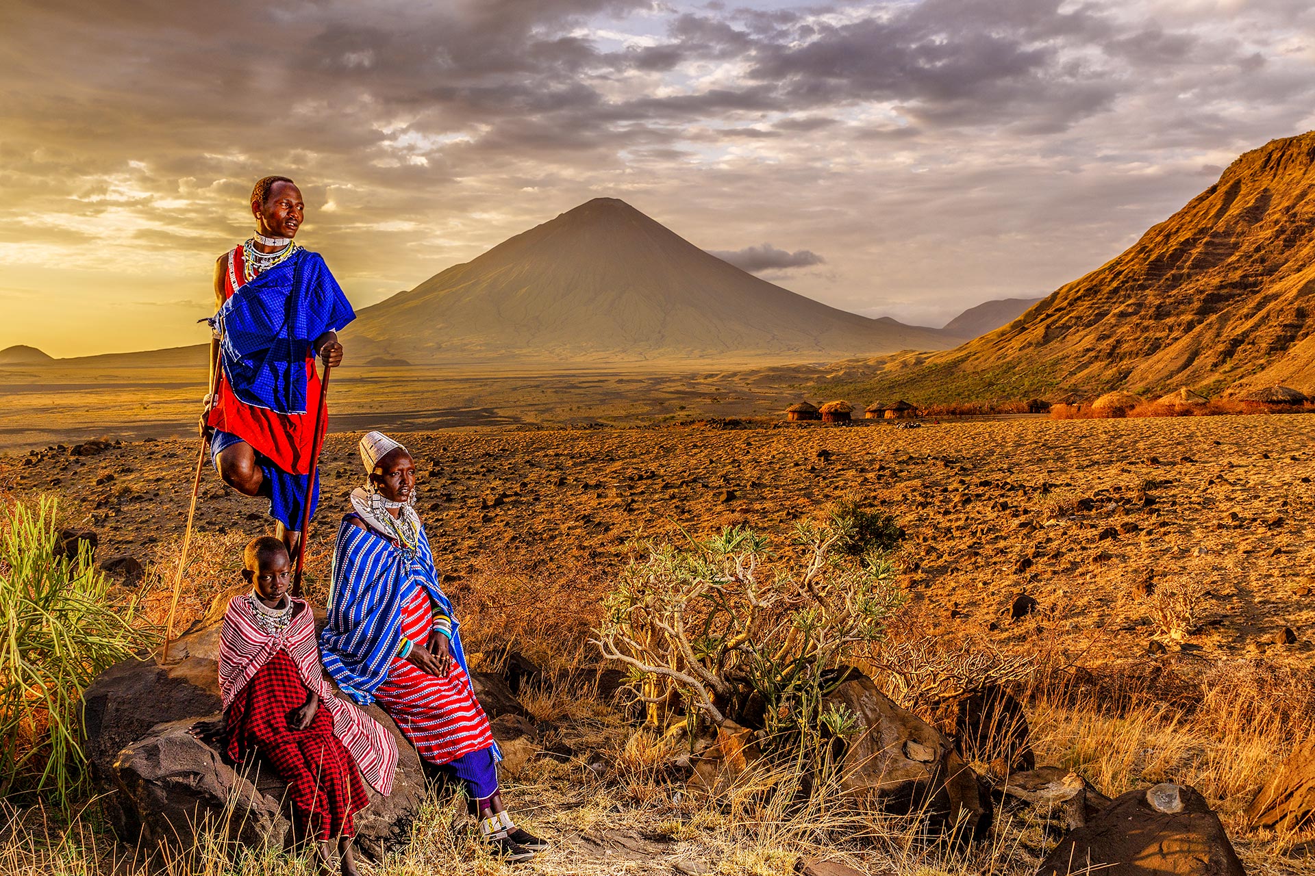 Auf dem hier gezeigten Bild sehen wir eine fotogene und stolze Masai-Familie, die ich in Tansania fotografiert habe. Die aufgehende Sonne symbolisiert einen schönen Neustart. Die warmen Farben des Lichtes und die bunten Kleider meiner charakteristischen Fotomodelle verleihen dem Werk eine fröhliche und wohltuende Atmosphäre. Die weite und interessante Landschaft zieht den Blick des Betrachters in die Tiefe des Bildes, wo der wunderschöne kegelförmige Berg zu sehen ist. Auch die Komposition aus Vordergrund, Mittelgrund und Hintergrund sowie die Blickrichtung der Hauptdarsteller sind perfekt inszeniert. Es ist eine idyllische Aufnahme aus Ostafrika.