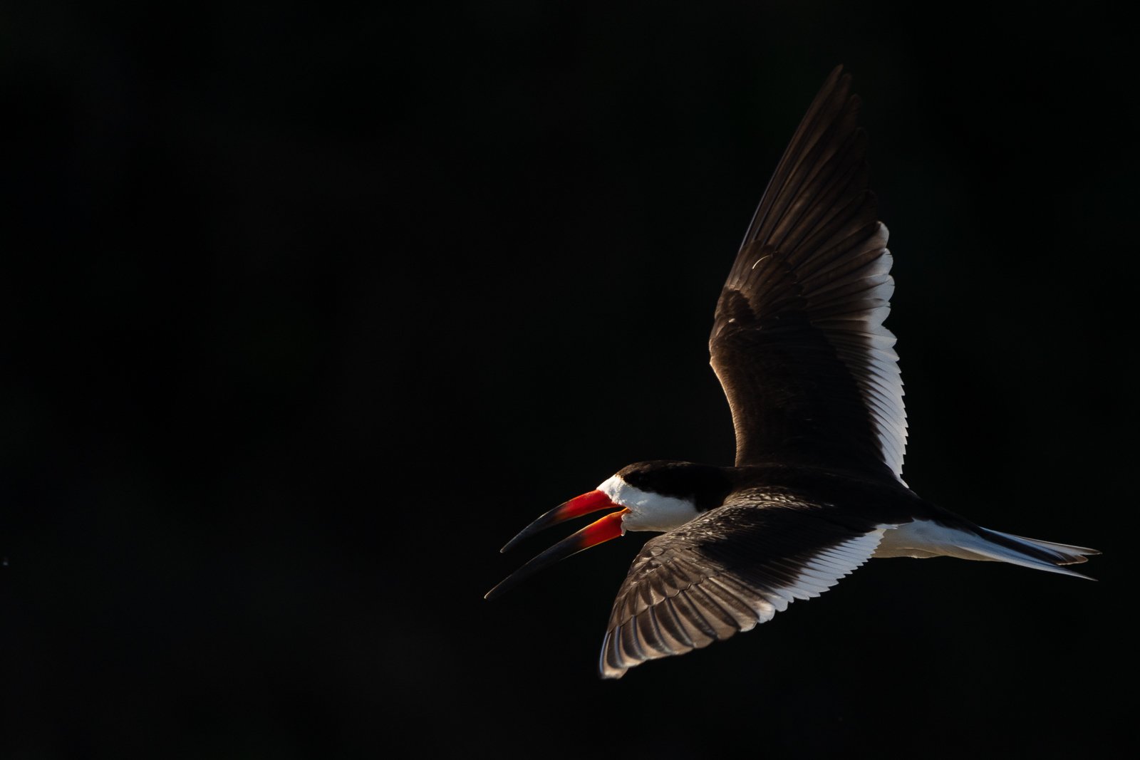 Wir fahren gleich wieder raus, um zuerst noch mehr Bilder von den fliegenden Scherenschnäbel aufzunehmen, in der Hoffnung, dass es Nebel auf dem Fluss gibt. Dann könnten die Bilder noch besser werden. Es ist eine schwierige Aufgabe, diese flinken Vögel beim Fliegen vernünftig zu fotografieren aber mit etwas Geduld und Übung geht das. Ich hoffe, diese neuen Bilder gefallen Euch.