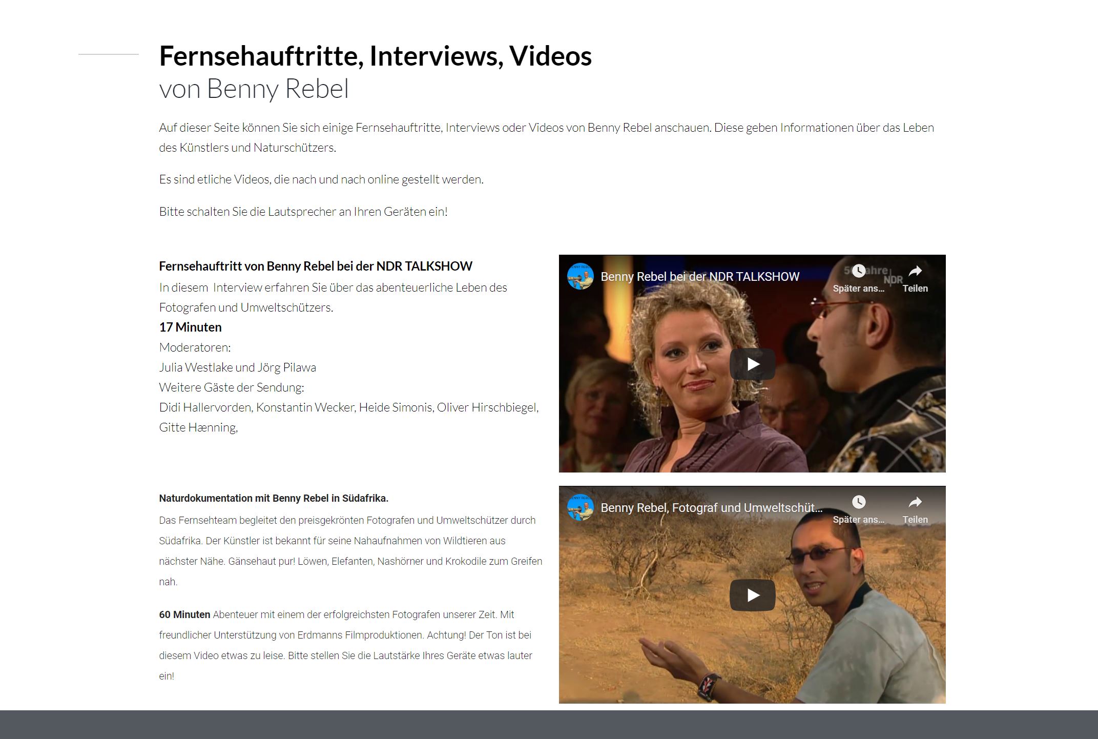Meine Fernsehauftritte, Filme, Interviews und Videos