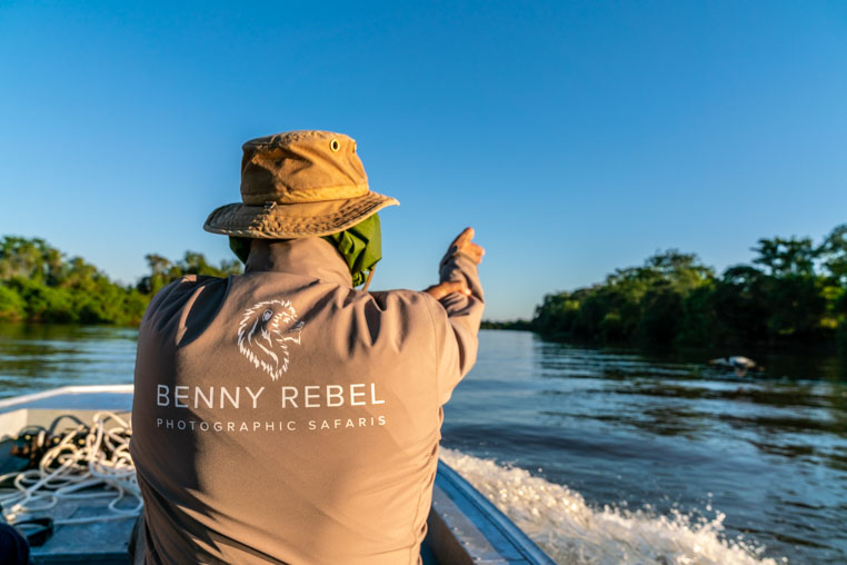 Wie Ihr bestimmt schon wisst, stehen die beiden Fotoreisen durch Brasiliens Pantanal an. Zahlreiche Bootstouren durch die weit verzweigten Flusslandschaften liegen vor Benny Rebel und seinen Fotosafari-Teilnehmern. Auf dem Bild des Tages seht Ihr ein Arbeitsfoto vom Benny. Die Fahrer der kleinen Boote sind zwar im Umgang mit Fotografen geschult...