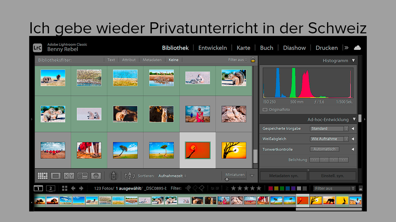 Wie Ihr vermutlich wisst, gebe ich gelegentlich Privatunterricht in folgenden Bereichen: FotografieBildbearbeitung mit Lightroom, Photoshop und Nik-FilternBildgestaltung und DesignGestaltung von FotobüchernVideoproduktionen, Filmschnitt und StorytellingKarriereaufbau für junge Kreative Seit letztem Jahr war ich mehrfach in der Schweiz und in Deutschland als Coach unterwegs und die...