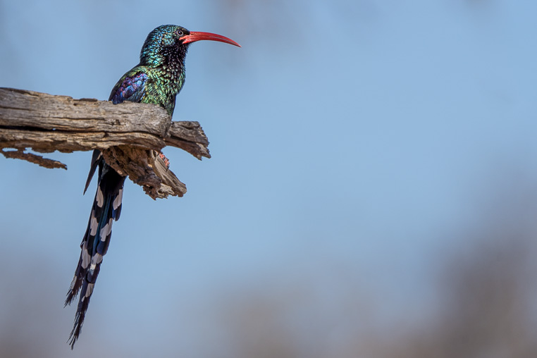 Während ich auf jeder Fotosafari etliche gute Bilder von z.B. Gabelracken, Tokos und Glanzstarre aufnehmen kann, ist es äußerst selten, dass ich diesen hier gezeigten Vogel in guter Pose erwische. Unser hier gezeigtes Fotomodell ist so gut wie nie alleine unterwegs und sucht täglich lärmend nach Insekten in Bäumen und auf den Termitenhügel. Obwohl er hin und wieder zu sehen ist, ist er...