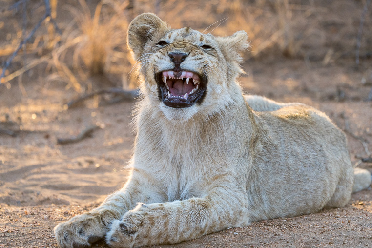 Auf meinen Fotoreisen durch die Wildnis fotografiere ich manchmal tierische Momente, die uns lustig, gefährlich oder anders interessant erscheinen. Hier ist ein Beispiel dafür. Der Löwe gähnt zwar, es sieht jedoch so aus, als würde er lachen.Wenn Löwen sich längerer Zeit ausgeruht haben und dann aufwachen, fangen sie an zu gähnen, bevor sie richtig aktiv werden. Durch meine...