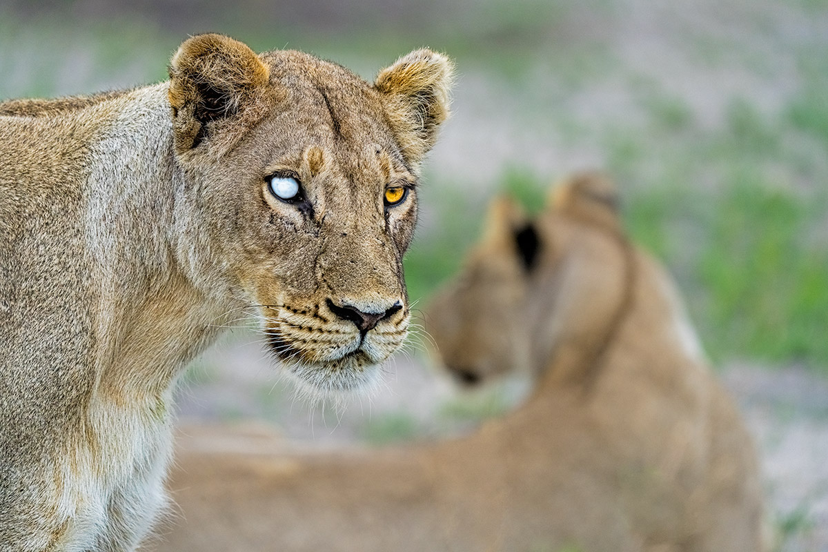 Silver Eye heißt eine Löwin, die auf einem Auge blind ist und trotz ihrer Behinderung erfolgreich ein großes Löwenrudel in der Wildnis Botswanas anführt. Das blinde Auge macht sie zu einem markanten und interessanten Löwen. Die Teilnehmer meiner Fotoreise und ich sind mit zwei offenen Geländewagen unterwegs, als wir das Rudel entdecken. Die Königsfamilie ist auf einer Mission...