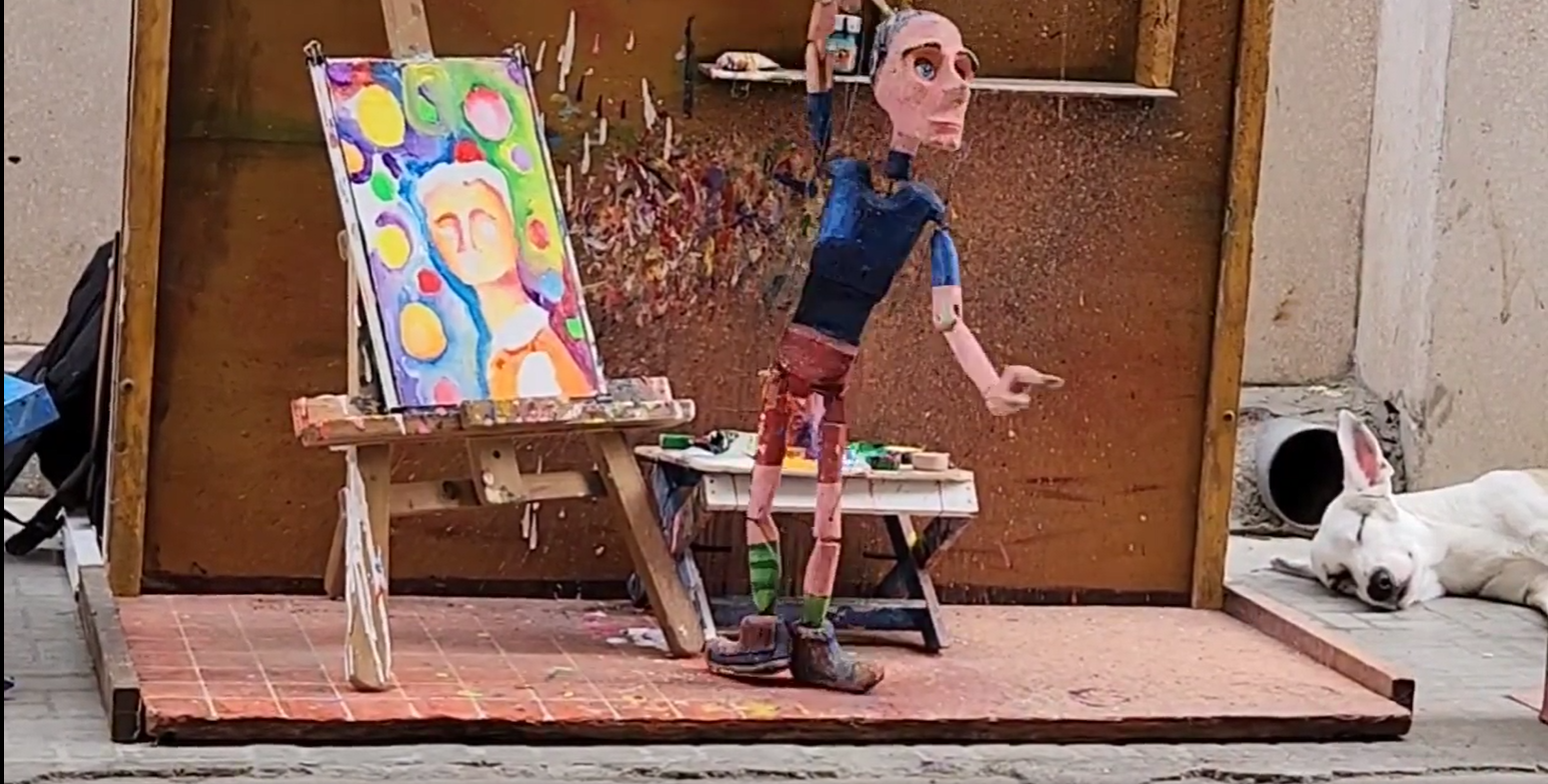 Eine Marionette malt und tanzt in Havanna