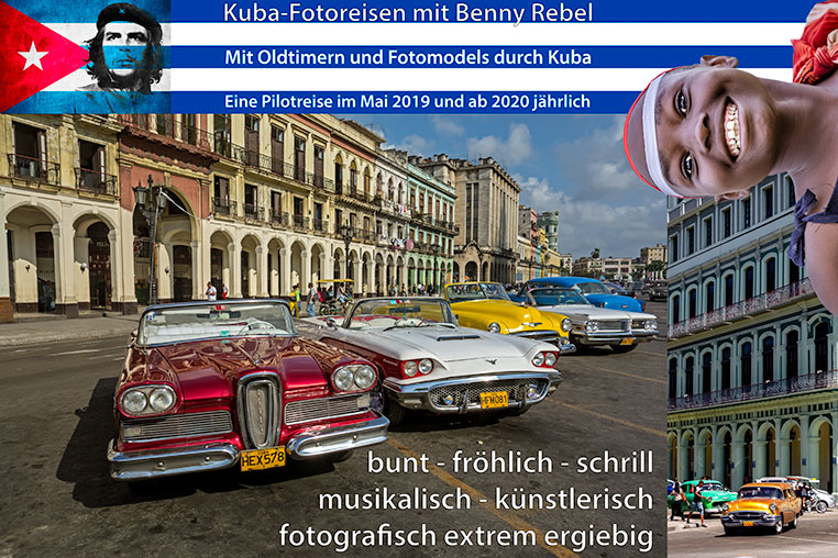 Dieser schicke, blaue Oldtimer wurde von Benny Rebel vor ein paar Jahren in Havanna, der Hauptstadt Kubas, aufgenommen. Beim Anblick dieser vielen alten, historischen Oldtimer und den fotogenen Bauten kam Benny Rebel die Idee, auch dorthin eine Fotoreise für Euch anbieten zu wollen. Um die optimale Gestaltung dieser Reise zu entwickeln hat es...