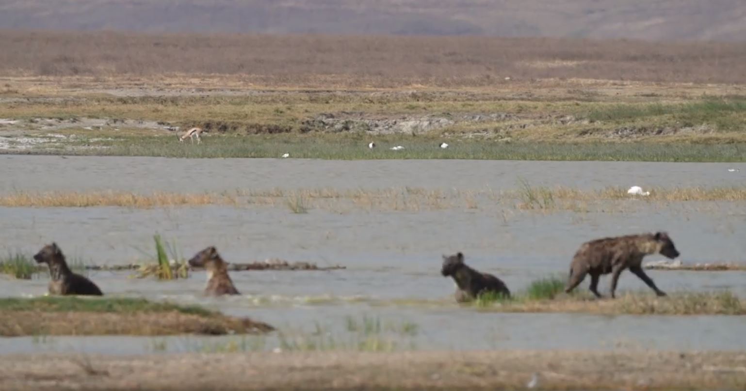 Die Hyänen greifen einen erwachsenen Kudu-Bock an und nach vier Stunden Kampf töten sie den Kudu im Wasserloch. Der Kudu verteidigt sich sehr gut, ist jedoch gegenüber der Überzahl der Hyänen machtlos.Das Video ist eine Erinnerung vom 28.04.2017 und es ist weiter unten zu sehen.Es ist eines der blutigsten und gleichzeitig spannendsten Jagdszenen, die ich jemals in der Wildnis beobachtet...