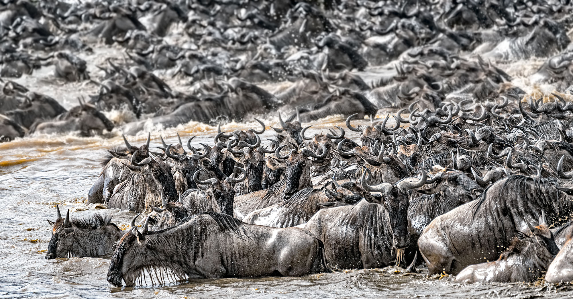 Ein weiteres Bild von der großen Migration der Gnus in die Massai Mara