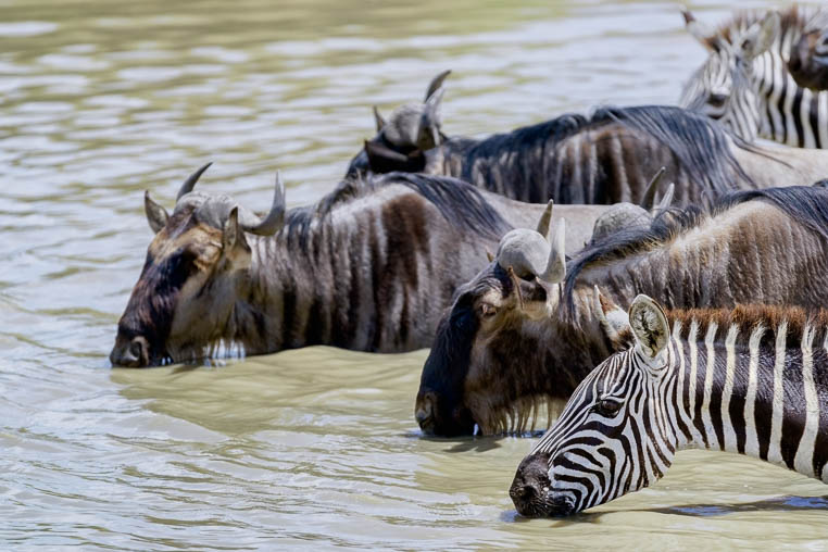 Die Teilnehmer meiner Fotoreise und ich beobachten gerade, wie einhunderttausend Gnus durch den Mara Fluss schwimmen. 😍 Migration extrem also. Sensationell und spannend. Die Flussüberquerung hat über 20 Gnus...