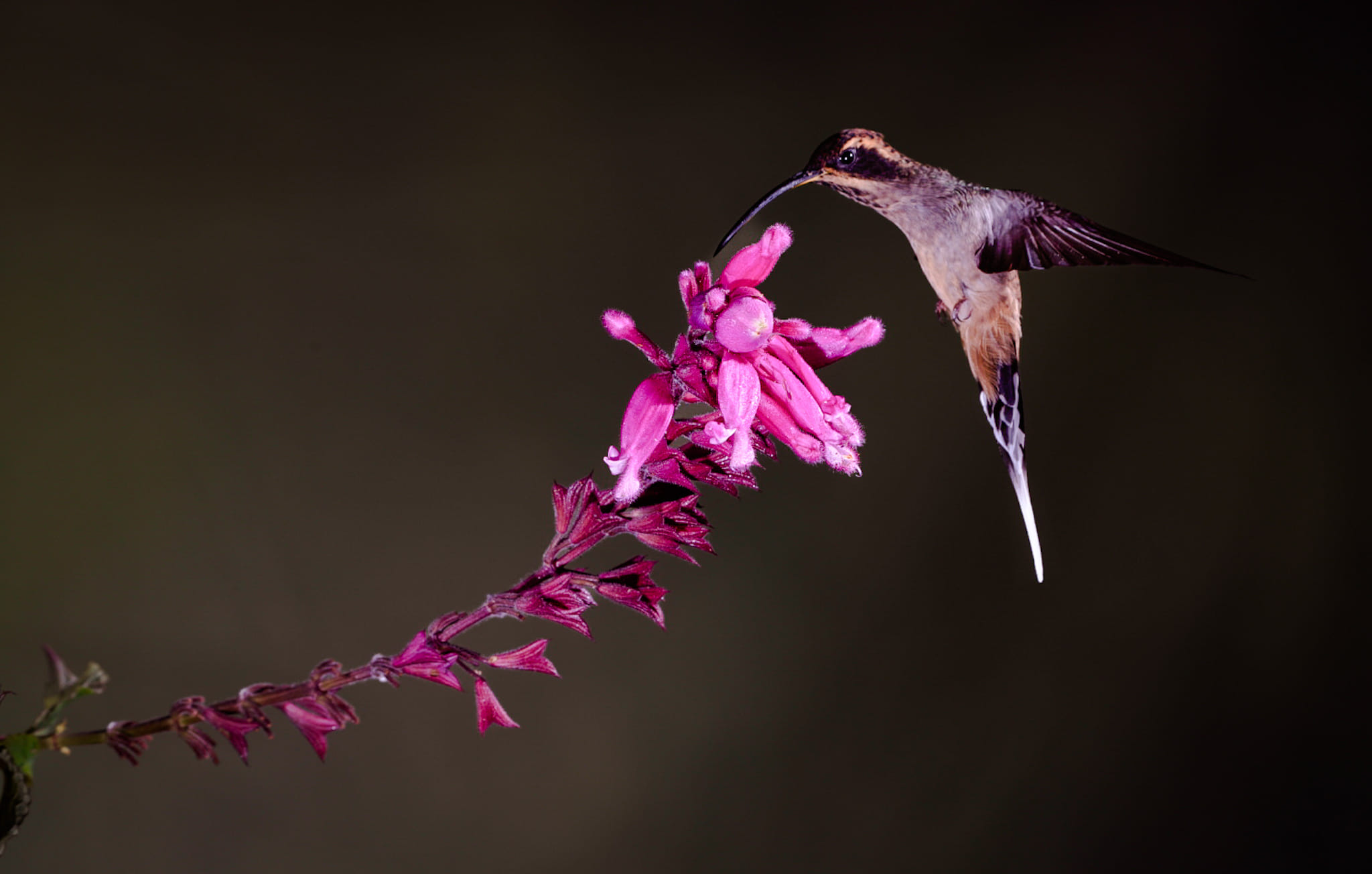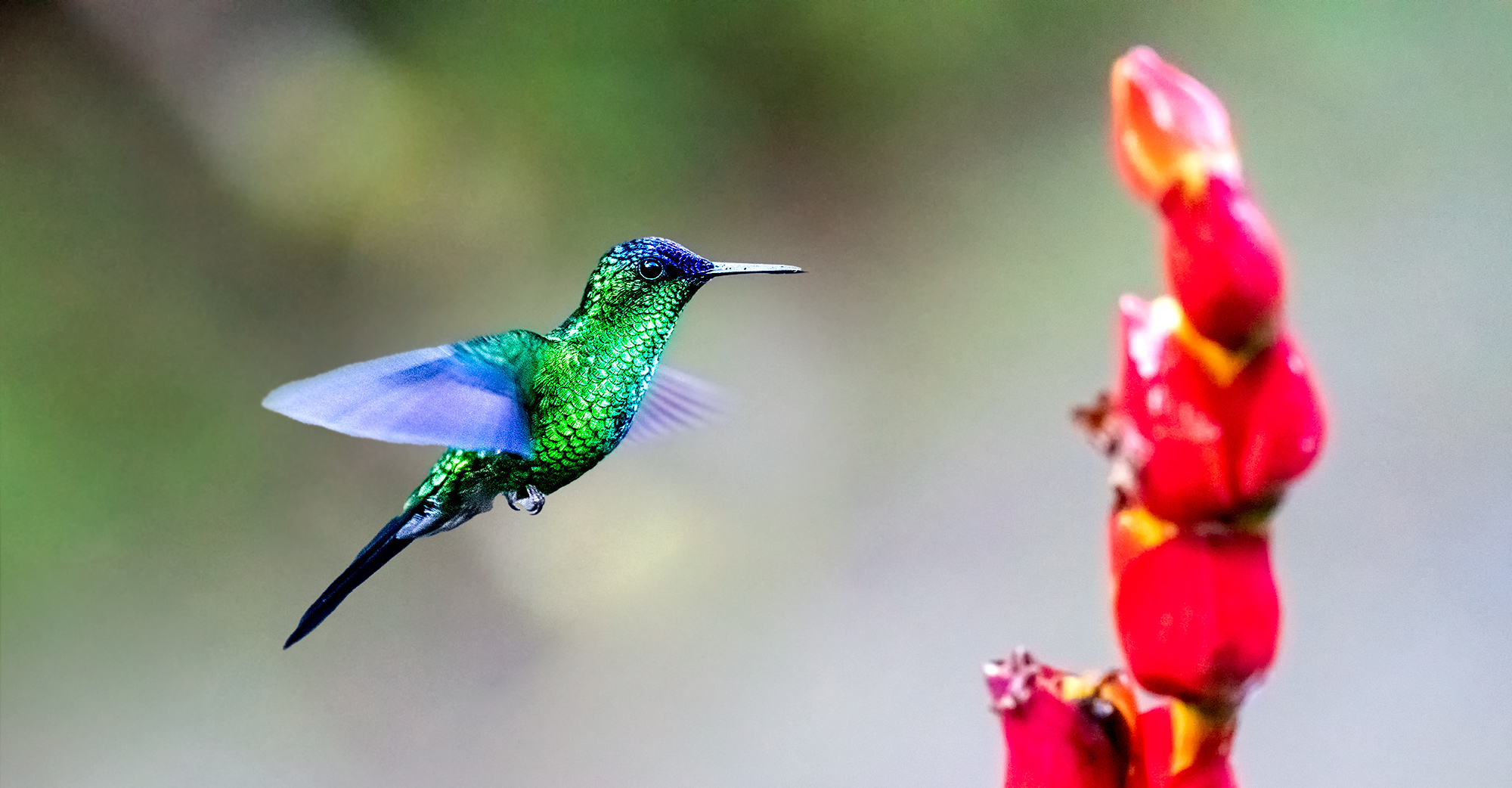 Der tropische Regenwald macht seinem Namen alle Ehre. Dunkle Wolken ziehen über den Urwald und sperren das Tageslicht, sodass es im Wald sehr duster wird. Ich kann nur noch mit Hilfe eines Blitzlichtes fotografieren und finde den Kolibri, der in meinem heutigen Bild im Vordergrund sitzt. Er ist ein entspannter Vogel und lässt mich sehr nah heran. Ich stelle den Fokussierpunkt meiner...