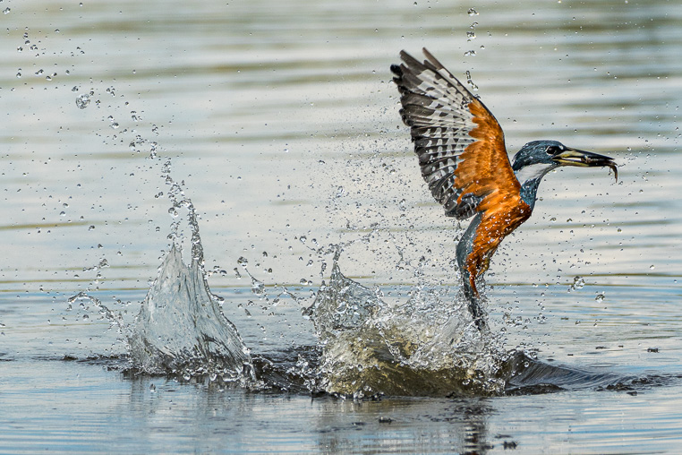 Der Eisvogel holt sich einen Fisch aus dem Wasser und die Teilnehmer meiner Fotoreise machen von dieser Szene hunderte von schnellen Fotos. Hier im Pantanal Brasiliens wiederholen wir diesen Fotoworkshop mit verschiedenen Eisvögeln, Reihern, Bussarden und andere fischfressenden Vögeln. Mit dem richtigen Coaching klappt alles Meine Gäste bekommen vor den Fotoworkshops viele...