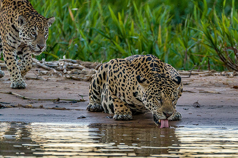 Gelbbraunes Fell, große schwarze Flecken die eine majestätische Fellmusterung bilden, dicke Pranken, ein relativ massiger Körper und ein ziemlich selbstbewusst wirkender Gang. Der Jaguar gehört zu den absoluten Stars im brasilianischen Feuchtgebiet Pantanal.Die Raubkatzen sind dort an die Anwesenheit von Menschen in Motorbooten gewöhnt. Die...