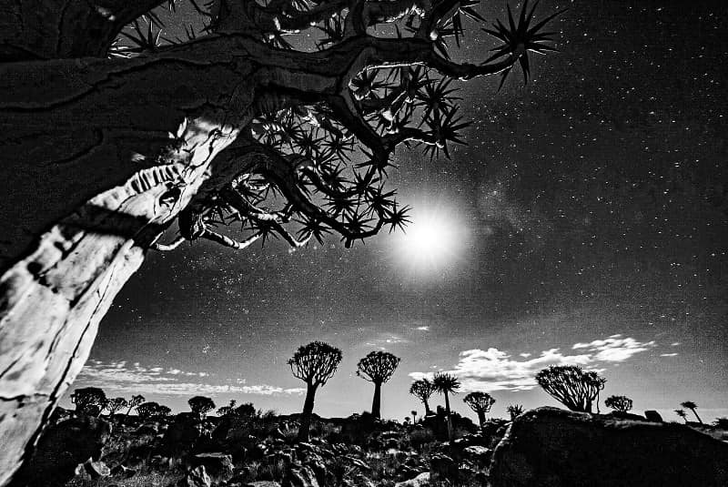 Die hier gezeigten Bilder habe ich gestern Nachmittag, in der Nacht und heute Früh aufgenommen. Sie zeigen die wunderschönen Köcherbäume, die im Süden Namibias zu finden sind.