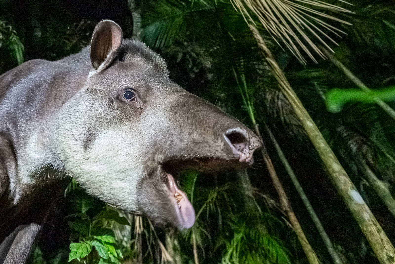 Die riesigen Vegetarier, die wie eine Mischung aus Elefanten, Flusspferden und Wildschweinen aussehen, sind sympathische und entspannte Lebewesen, die hier im Urwald leben. Diese nachtaktiven Tiere sieht man nicht häufig. Deswegen freuen wir uns sehr über diese sehr spannende Begegnung aus nächster Nähe.