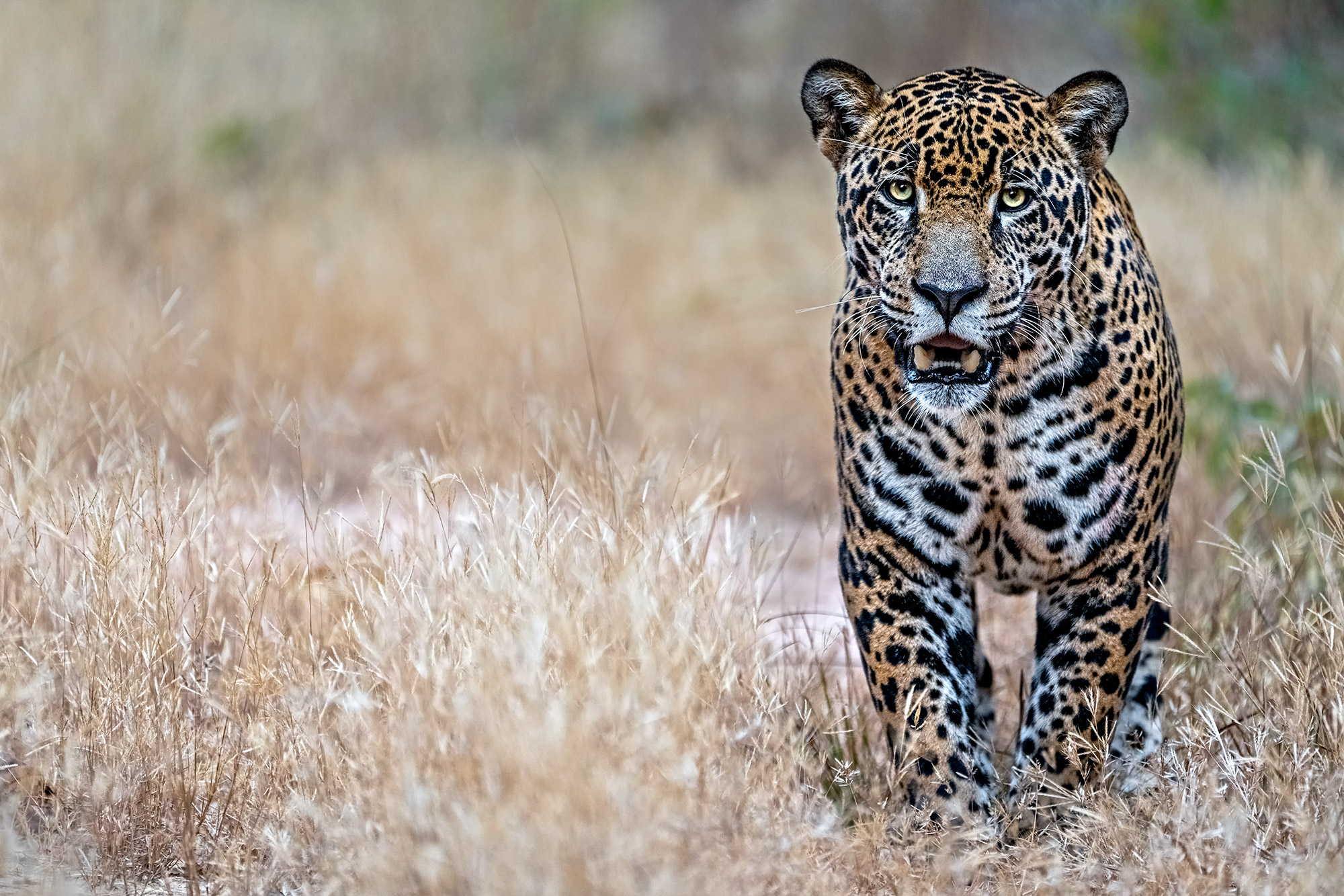 Während die Fotografen in Afrika und Asien oft Schwierigkeiten haben, Leoparden in der Wildnis zu finden und zu fotografieren, ist diese Aufgabe in Brasilien erheblich leichter. Der Grund liegt darin, dass die Jaguare im Pantanal Brasiliens, wo wir hauptsächlich nach ihnen, gerne Kaimane und Capybara jagen. Capybara und Kaimane leben im oder am Fluss und um diese jagen zu können, patrouillieren die Jaguare entlang der Flüsse. Sie kommen also aus dem Dickicht des Waldes heraus, wo es schwierig ist, diese gutgetarnten Tiere zu finden und laufen entlang der Flüsse.