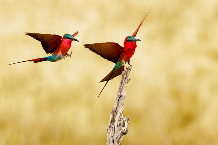 unser neues Bild des Tages zeigt zwei wunderschöne Scharlachspinte, die im Chobe Nationalpark auf einer Fotoreise durch Botswana aufgenommen wurden.